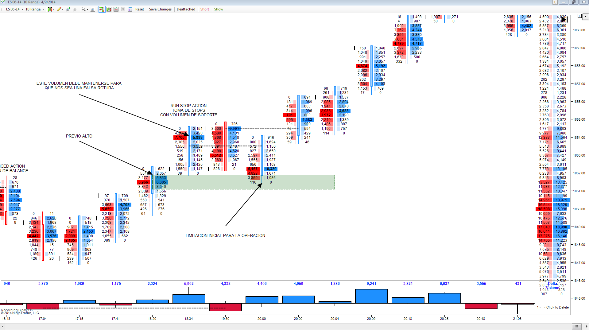 litosnano escribió: Aun así me surge muchas dudas, jejeje. Y la primera es: que diferencia hay entre el máximo marcado por este tipo de gráficas y el gráfico de velas¿? Me explico, yo en un gráfico de velas (y, óbviamente viendo la profundidad de mercado que me da el broker, los 2500 contratos aproximadamente) puedo llegar a observar el mismo aspecto, no¿? En el 1842 veo una gran resistencia en número de títulos y al ver que no lo supera considerar resitencia y ponerme corto en una operación arriesgada.