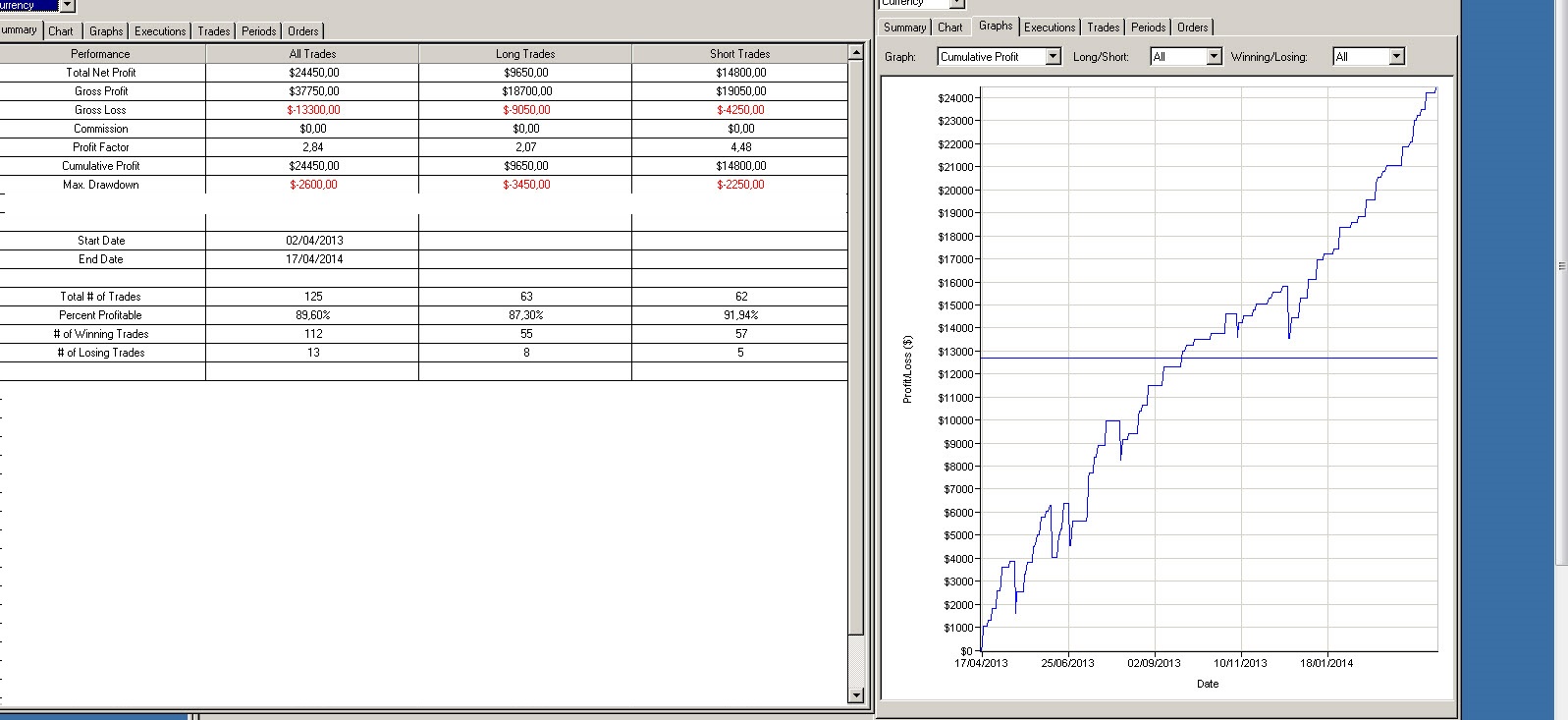 Posiblemente este sistema en año venideros, puede caer entre un 20 a un 40% de los beneficios ahí plasmados, y súmale que ni he aplicado slippage ni comisiones.