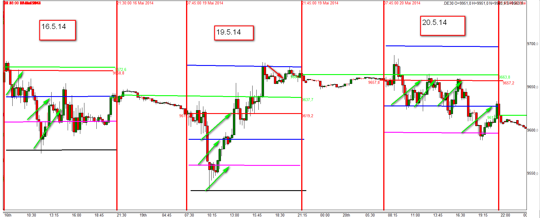 No lo hace pues se puede considerar que un 10% de los dias experimentamos trend days. Por esta razon la gestion de la FDAX-TRADING STRATEGIE preve tradear los trend days.
