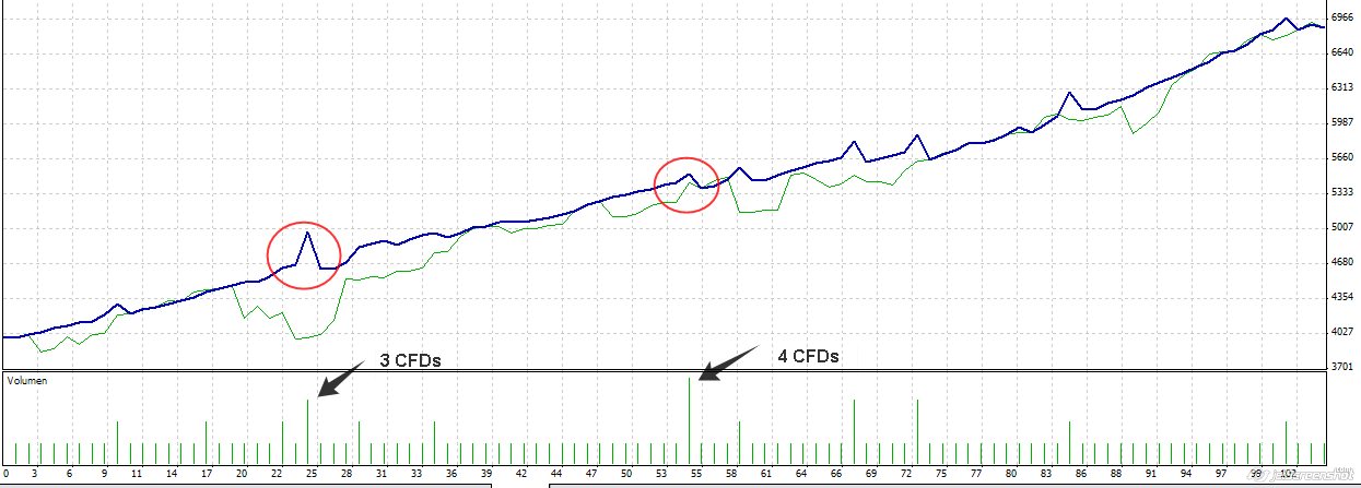 Más o menos lo que dices, sólo que las distancias respecto del cierre del contado tanto por la tarde como por la mañana son diferentes, y tienen una fórmula bastante compleja, sobre todo la de la mañana. Recuerda por la mañana solo se entra si el hueco de ese día está abierto. Creo que tiene algo de la FDax de Georg pero con el tema de del hueco abierto y no se cierra al final de la sesión. Ganadora es probable que lo sea, pero es muy jodia en el tema psicológico , y para entradas con 1 CFD como entrada principal si se va con 4000 de cuenta no es de extrañar ver DD superiores al 30% lo ideal son 8000-10000, para ese lotaje, que al año es probable que se pueda subier a 2 .