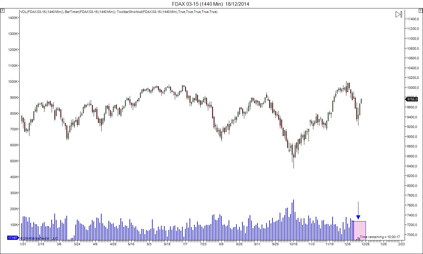 Créate un indicador con el siguiente código y lo cargas sobre el FDAX 03-15 para que te muestre en un panel el volumen del FDAX 12-14. En 30 minutos.