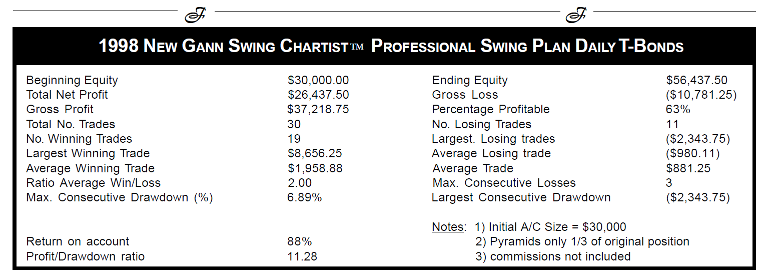Bueno mismamente en el artículo original de Robert Krausz tienes resultados del año 1998 operando el T-Bond. Lógicamente no es lo más objetivo pero algo es algo. Desde luego pintan bien, un draw de casi el 7% con una rentabilidad de casi el 100% no está nada nada mal: