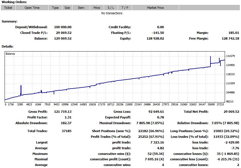 El SL va calculado a un porcentaje de riesgo, así que el SL va cambiando a medida que el volumen va incrementándose, si el volumen incrementa el SL se va acercando cumpliendo el % de riesgo para no perder más de lo que se le ha indicado. Y con las comisiones pues no tengo problemas en ello, mi scalper puede trabajar con cualquier spread, es indiferente a ello aún con las comisiones externas del broker. En el siguiente link veras la cuenta que tiene casi 19k pagadas en comisiones al broker http://www.fxstat.com/performances/view ... ster-39708agmageton escribió: