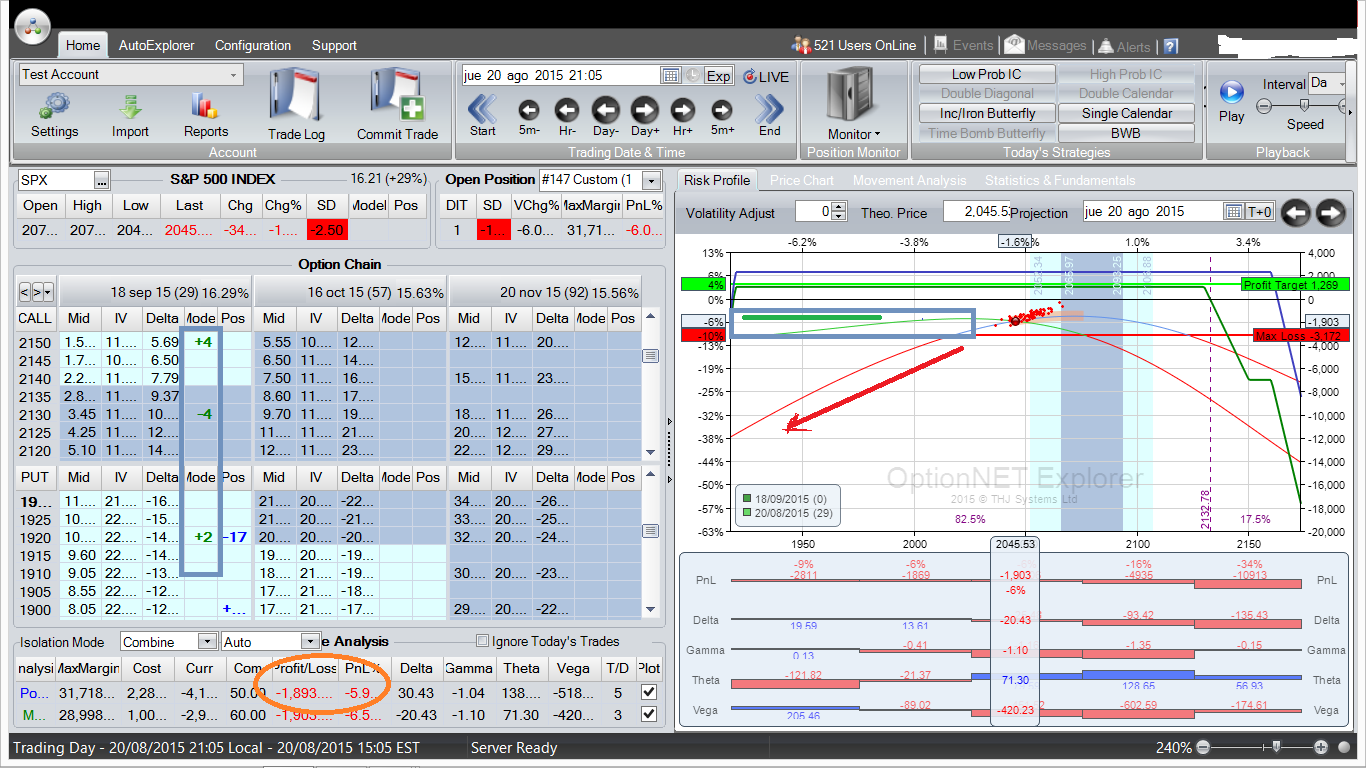 No es más que un pequeño ejemplo del impacto de los cambios de volatilidad implícita sobre el perfil de beneficio ó pérdida de este tipo de combinaciones, y como muestra de que es un factor más a considerar en el set up de las mismas. No es que sea el más importante (lo es la delta, con diferencia), ni que este tipo de estructuras no acabe en beneficio, muchas veces, pese a estar en pérdidas iniciales en ocasiones debido a estos cambios de volatilidad, pero siempre viene bien el saber cuál es la razón de que podamos estar en pérdidas si hacemos delta neutral con income trading y el subyacente no se ha movido mucho. A menudo es por el cambio en la volatilidad.