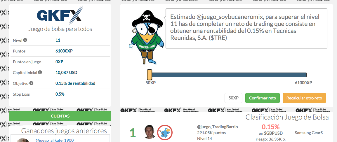 El tema de los 50XP en juego mejor lo preguntas allí mismo, en ese portal de tradertwit. Imagino que tendrán un foro o algo habilitado para consultas como la tuya.