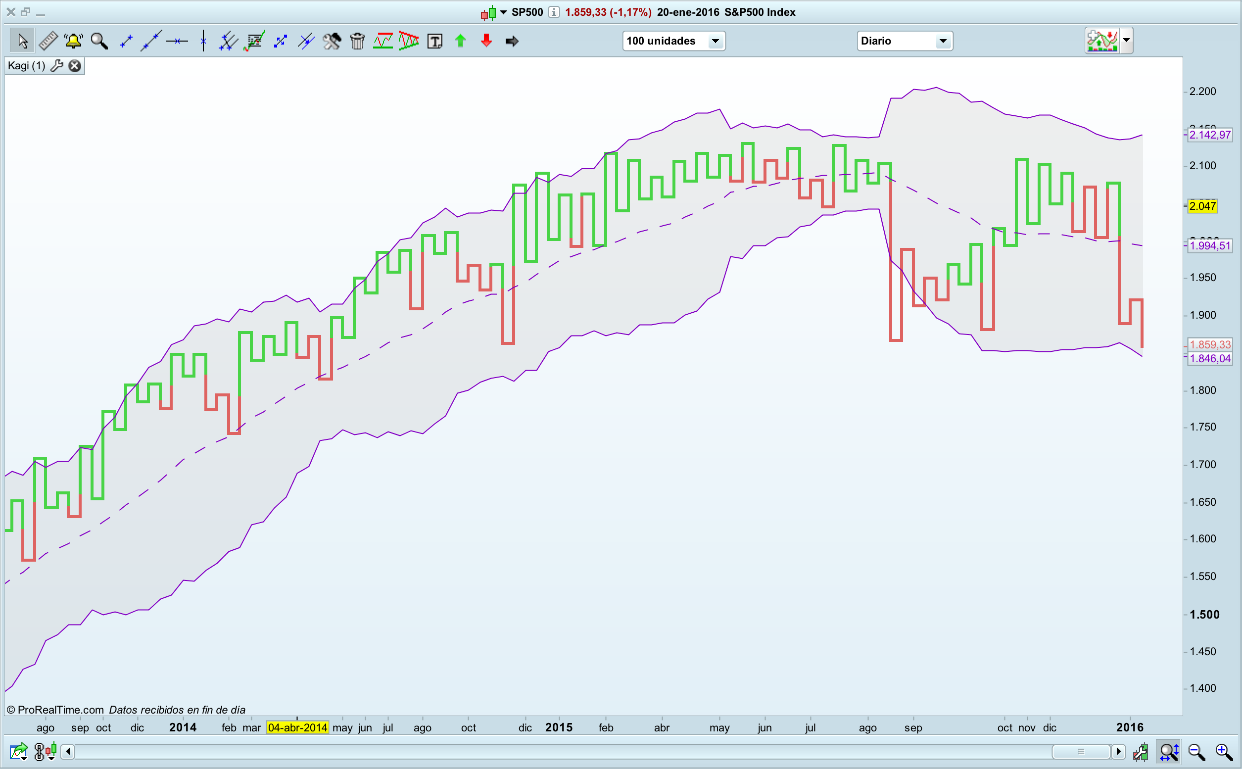 He probado en Renko y Kagi y he podido añadir medias móviles, bandas de Bollinger, canales de Donchian, etc...