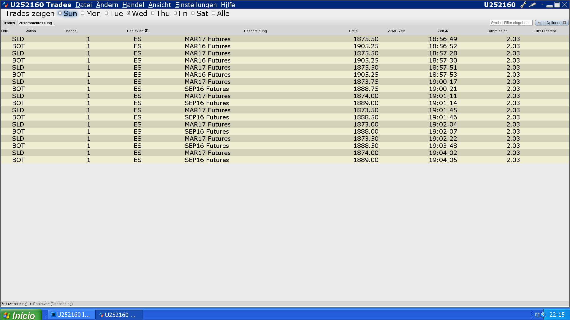 Hoy cerré 3 cortos del Mini S&P de MAR16 y 6 de SEP16 y he abierto 9 cortos de MAR17: