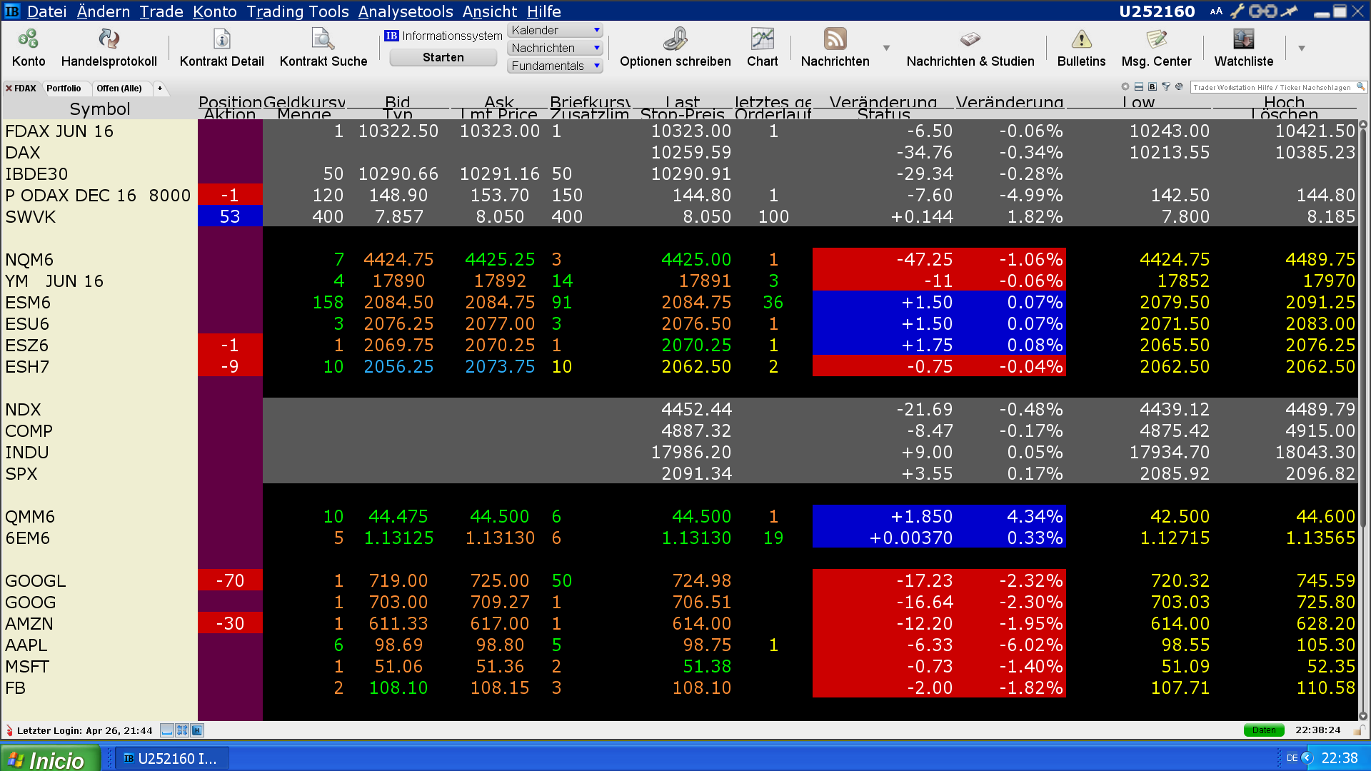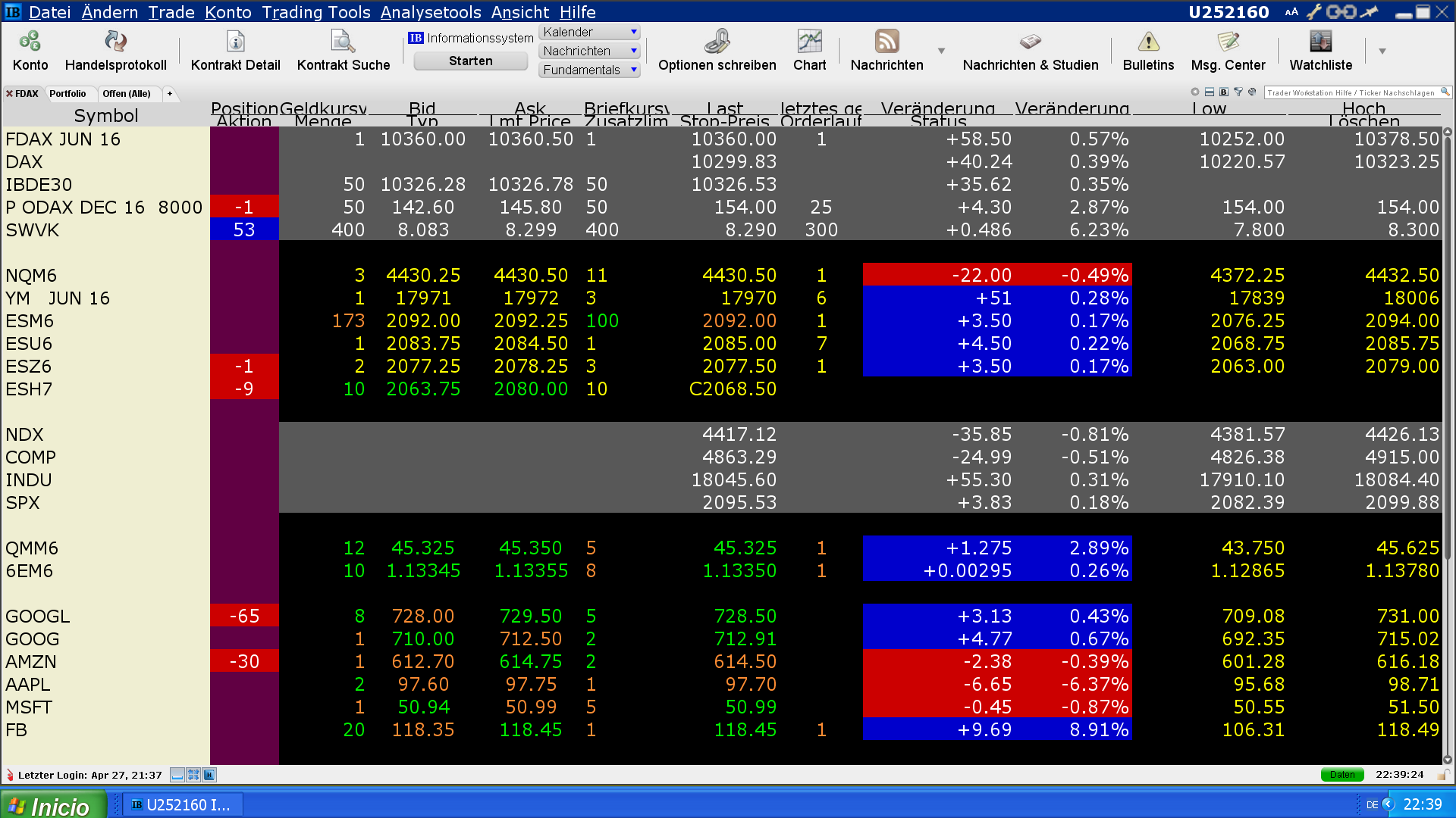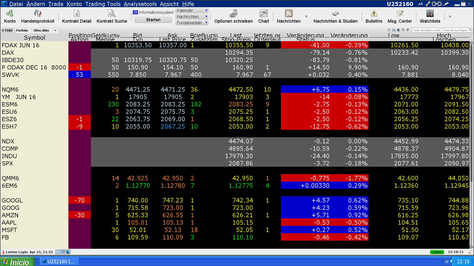 La PACIENCIA es una virtud indispensable en este negocio, y el que no la tenga es carne de cañón para los sionistas y compañía.Ayuso Trading escribió:Claro, y lo que nos gustaría saber si quieres comentarlo, es qué piensas hacer o hasta dónde piensas aguantar antes de cubrir o disminuir posición, a no ser que tengas otros 200k pa poner encima de la mesaPepe escribió: Eso, ahora, a toro pasado, suena muy bien, es cuestión de acertar, o, mejor dicho, que te dejen acertar. No obstante, si la codicia sobrepasa los límites que no debiera sobrepasar, no es bueno. Con eso quiero decir que que cuando abrí los 10 cortos en el S&P he abierto 1 ó 2 demás. Pero ahora hay que jugar con los 10 !!!