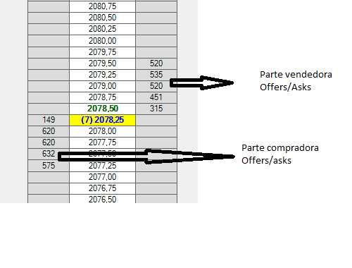 Las órdenes de la parte izquierda (Bids) representan los suelos y las órdenes de la parte derecha (Offers) representan los techos.