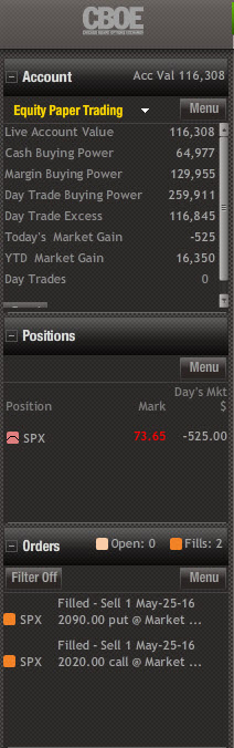 Estoy intentando enterarme un poco del tema de las opciones, haciendo pruebas con el simulador del cme, vendiendo puts y calls del spx, pero nunca me asignan con lo que la cuenta no para de crecer (y me creo que lo hago bien, cosa que dudo mucho).