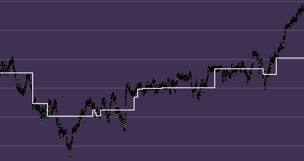 Totalmente de acuerdo, aplícalo a ese grafico de fibos y comprobaras que los fibos solo son una medida de retroceso contra el movimiento previo, ese escenario de volatilidad está marcando las zonas de entrada en esa tendencia acotando el ruido Es fácil y rápido de calcular con herramientas del análisis técnico y si quieres vuelves hacer el cálculo de fiabilidad y te alejaras muy al alza del 50%,, a mi ese cálculo del ruido de esa pauta, utilizando el Análisis técnico para calcularlo me da como resultado este grafico desde que comienza la pauta sin modificar parámetros, siempre utilizo los mismos de ATR y desviación típica , por ATR esta marcando esa media como máximo rango de ruido