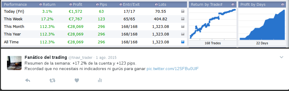 Hola Alberto,X-Trader escribió:A ver es cierto que Trd4Living ha entrado de forma un poca ruda pero también es cierto que tampoco sería mala idea que Russell publicase su operativa en algún servicio tipo MyFXBook o similar para poder evaluar ratios, evolución, gestión del riesgo, etc.