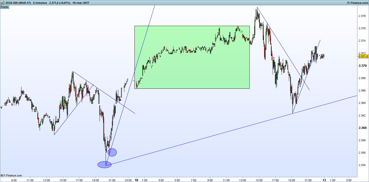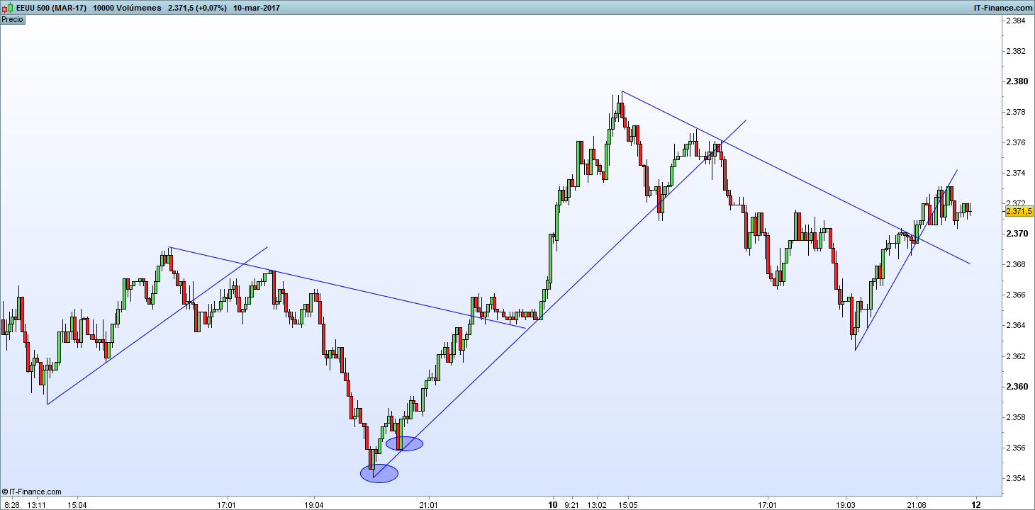 Si proyectamos dos lineas sobre los mismos ticks marcados en los mismos pívot de mínimos, las líneas tienen que ser idénticas a no ser que se tracen sobre diferentes niveles que el precio marco en tiempo real en todas las graficas, cambiara el posterior desplazamiento de las velas hacia la derecha dependiendo de que variable grafiquemos
