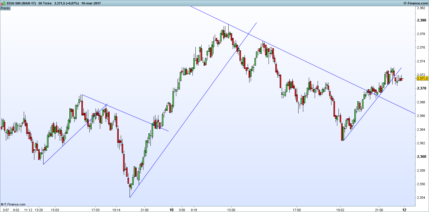 Si tomamos los ticks que marca el precio, es lo que vale, luego con esos ticks los podremos agrupar en paquetes y formar velas mas grandes, obviamente cuanto mas grande es el paquete mas ruido filtra la vela sea de rango de tiempo o de volumen