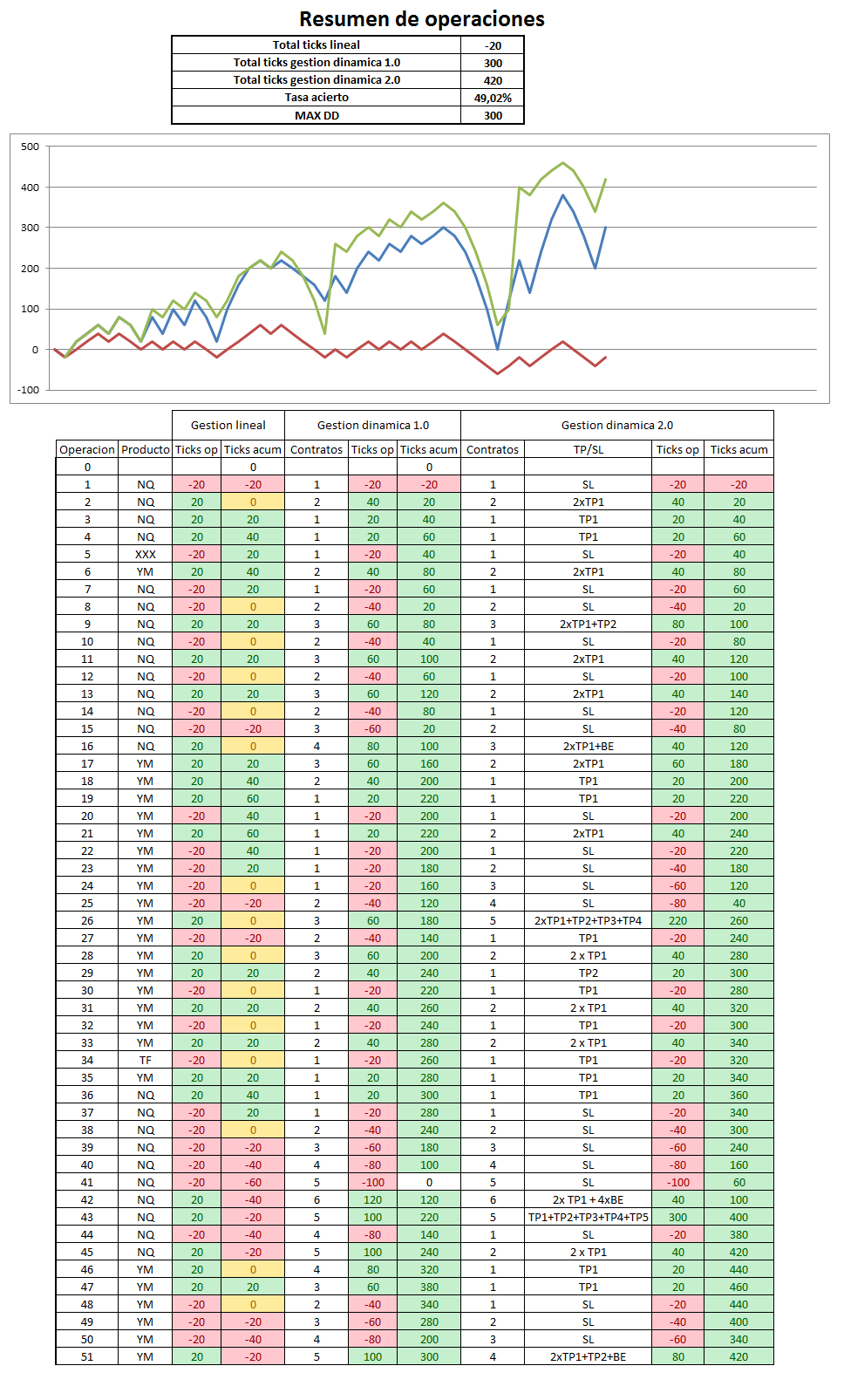 En la 2.0, sera con 2 contratos, ya que en el ultimo trade no conseguimos limpiarnos el ultimo contrato en su objetivo y seguimos con ese lastre.