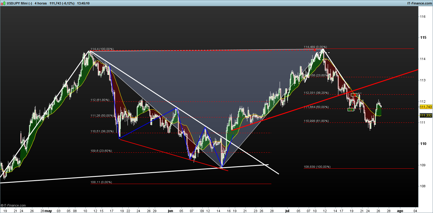 Lo inquietante, para largos, es que en 4H está bajista. Y el precio tendrá dificultades para superar 111,47.