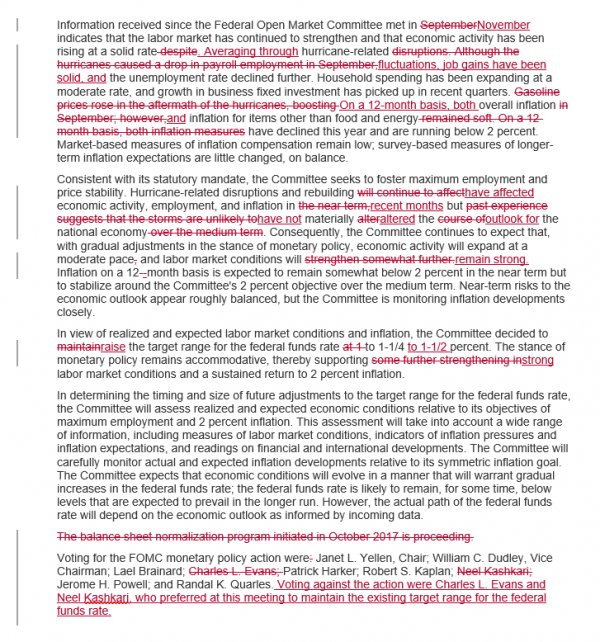 Aqui lo interessante es que se confirma el bias mas dovish de la FED poues vemos que tanto Evans como Kashkary no quisieron aumentar los tipos de 1.25 / 1.5% y comparando la 1º imagen se confirma este bias dovish