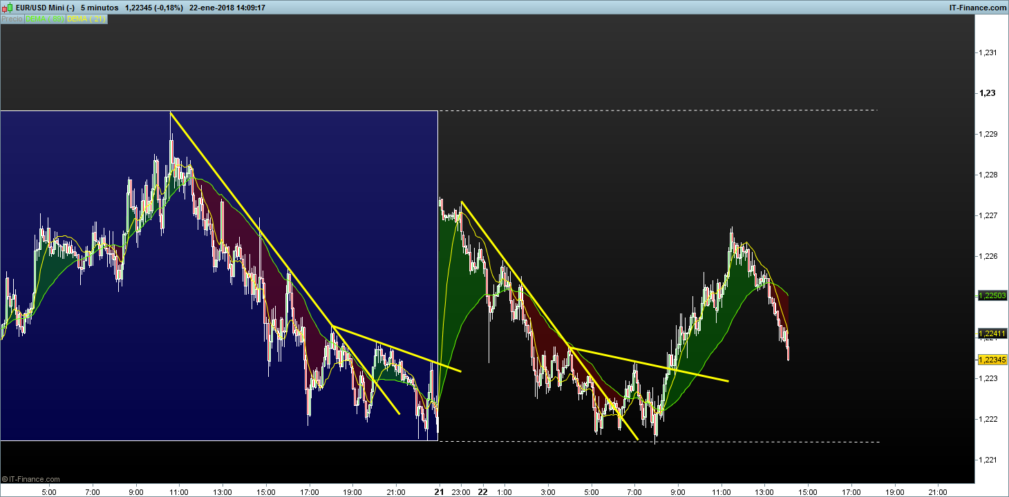 Funciona bien para monitorizar porque se mira el mercado en un entorno fijo. El cerebro puede asimilar y reaccionar mejor. Es más clara la dinámica sin distorsiones temporales
