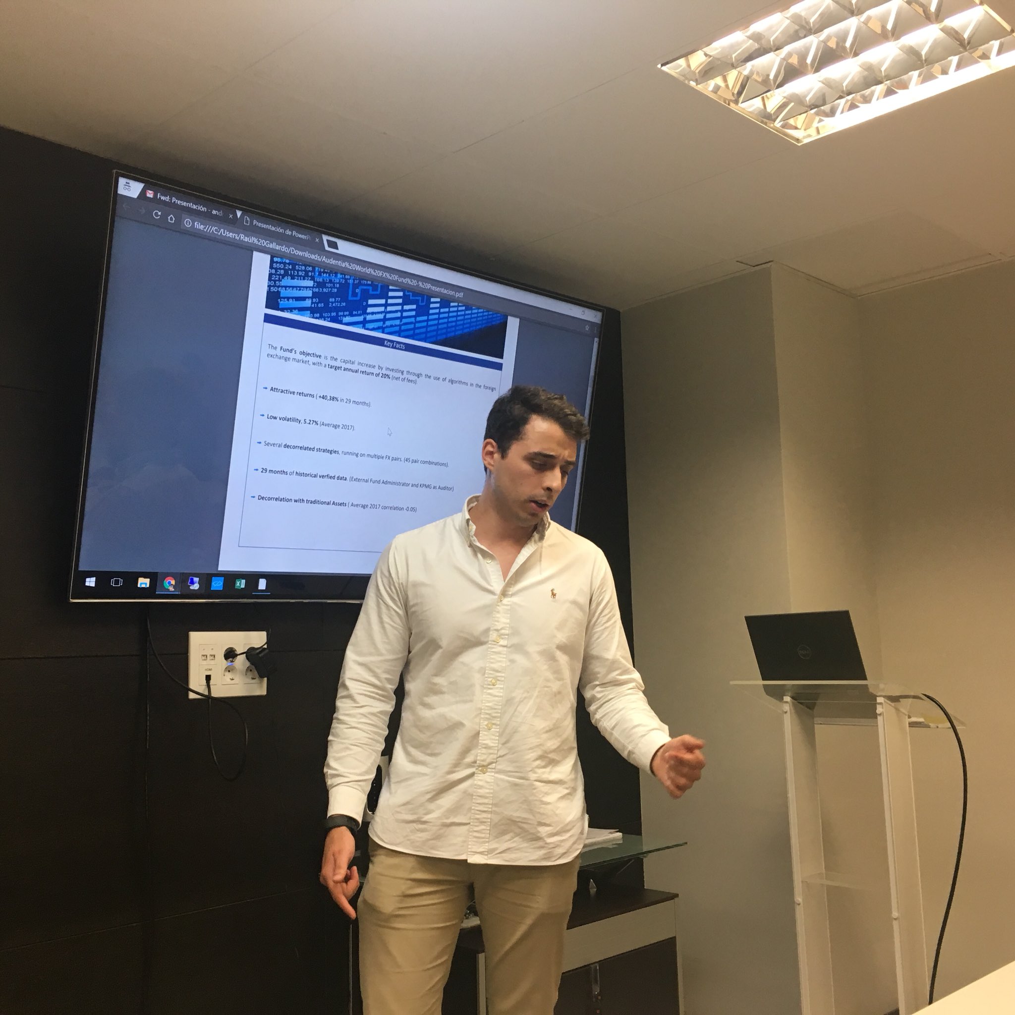 Tras el descanso para el café, seguimos con la ponencia de A. González, el cual trabaja para un hedge fund de divisas. Nos habló un poco sobre lo que hacía, analizamos las cifras de sus resultados y hablamos sobre la regulación de los fondos.
