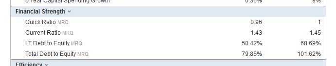 Y on un current ratio del 1.43 y un Debt to equyty del 0.75 significa que no esta nada nada nada apalancada o sea unos buenos fundamentales