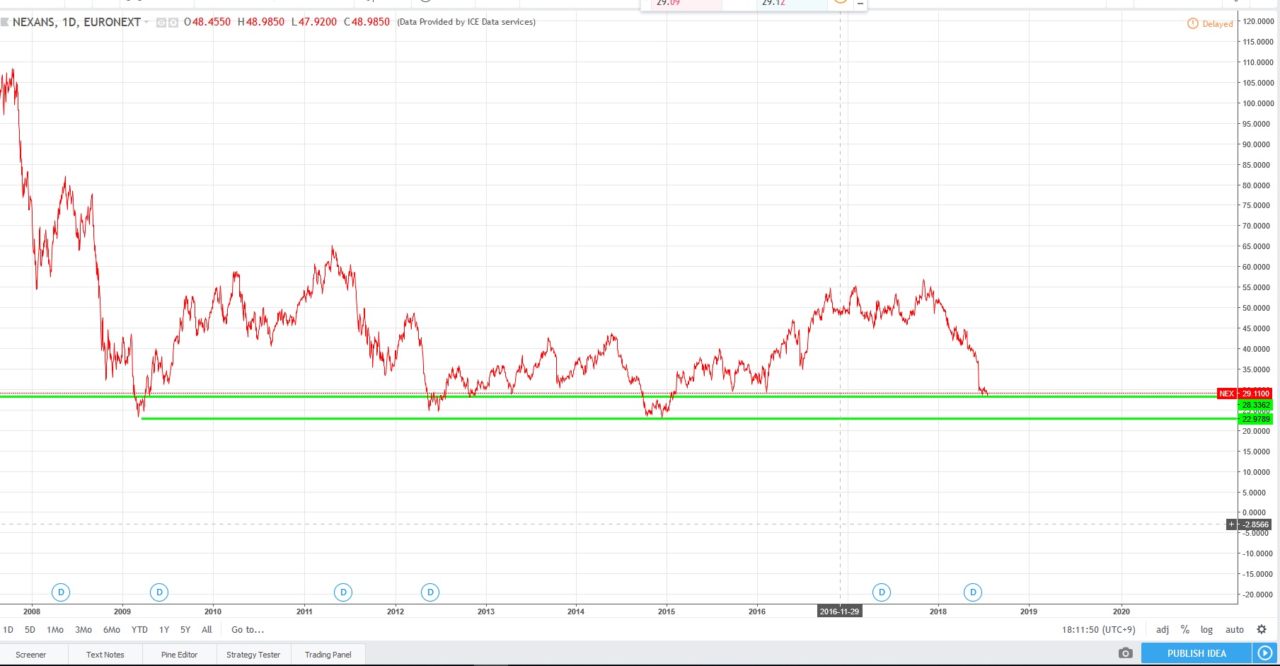 En 28 junio de 2018 Nexans emite un warning call diciendo que algunos proyestos de electrificacion fueron transladados a 2019 y algonos asta cancelados lo que suporia una cayda del 15% del Ebitda del trimestre!!!!