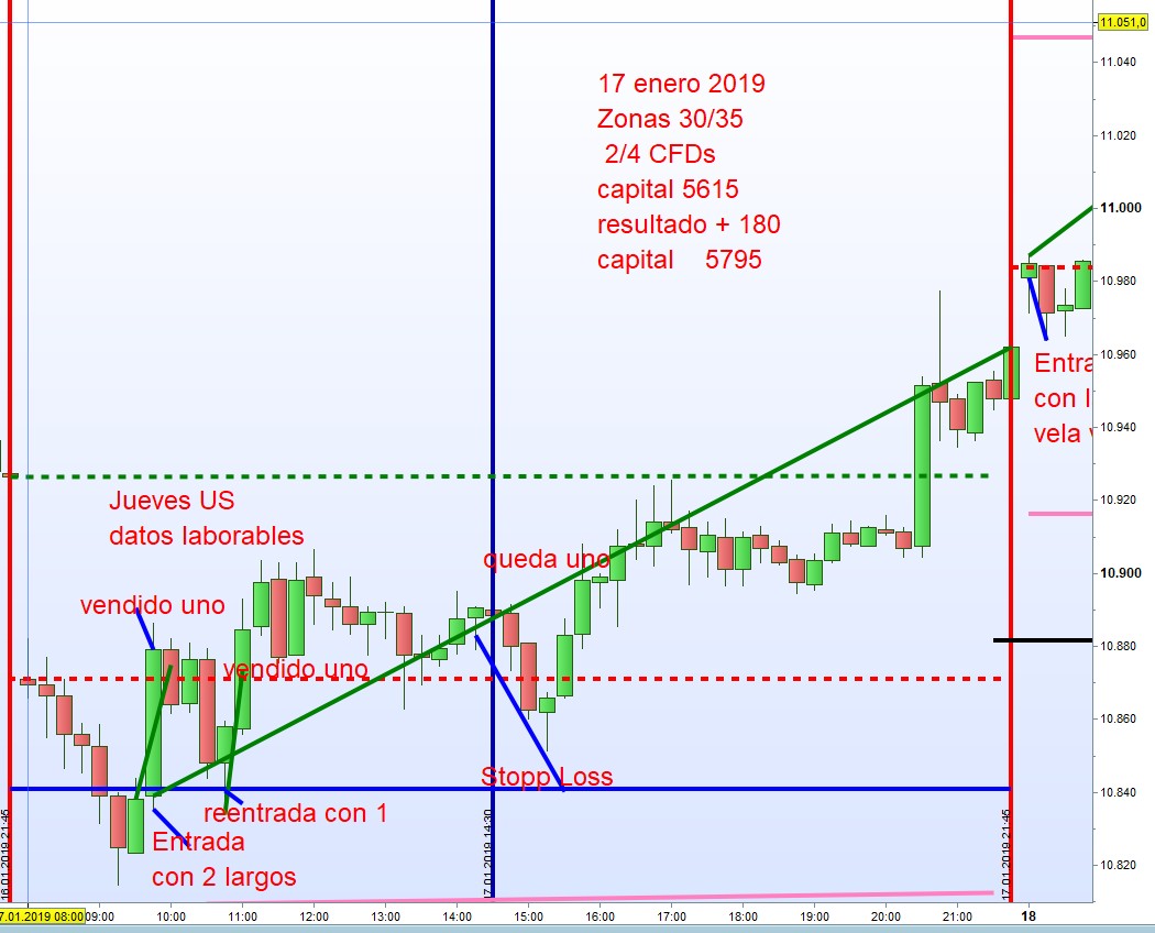 Per regla general: No se opera dicha regla el juves que precede el primer viernes del mes, si el Wide Gap cotiza mas de100 puntos en perdia y si los DJIA FUT cotizan mas de 2% en perdida. La primera entrada se hace con la primera vela verde despues de la apertura. Si la entrada es realizada bastante debajo de la apertura vea grafico del 10 de enero con ventas y reentradas. Todo interesado apunta estas reglas y hace copias de los graficos. No voy a repetirlo todos los Jueves