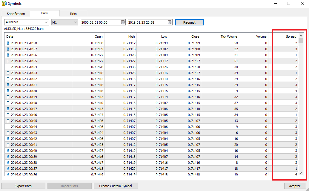 la descarga al tick me tomo mas de 12h, pero luego observo lo de la imagen y me pregunto como ¿calcula el spread?
