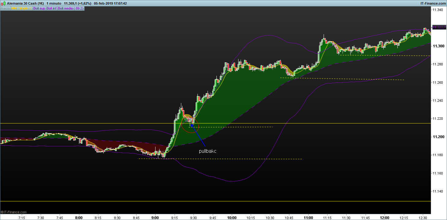 En dax en 5 m donde te marco la entrada 2, mira donde la da respecto a la media de 9 periodos y la inclinación que lleva cuando el precio la toca