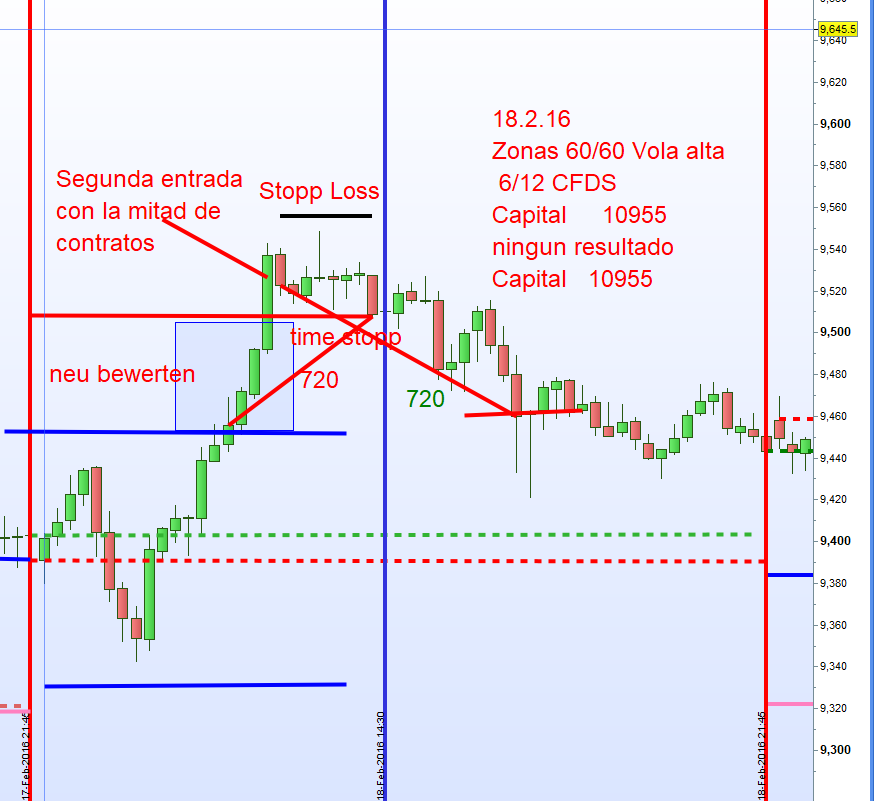 Como informado tengo que revisar o precisar algun texto en cuanto a la extension de rango, En el grafico vemos que ninguna vela ha cerrado hasta 14:30h debajo la apertura. En muchos ocasiones este es el principio de un dia de tendencia.Tambien vemos que el stopp loss ha sido executado un poco antes de las 14:30h y no habia tiempo que el precio bajase debajo la segunda zona. La extension de rango(ER) depende mucho de los DJIA FUT y hasta el lector no sabe interpretarlo bien recomiendo de no tradear la ER.