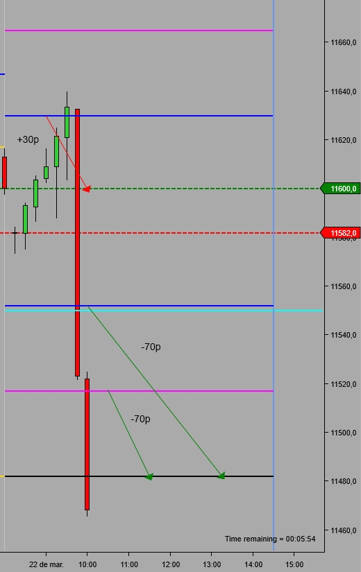 Con todo el respeto y con el animo de aprender. Entrar en esa caída sin esperar a vela de giro creo que no forma parte de la estrategia, con los datos de PMI Alemán recién publicados y tan malos y una caída desde Z1 de cortos a Z1 de largos, creo yo que requiere una clara vela de giro para abrir alguna posición larga, es un mini crash en toda regla y ponerse en contra de eso, es como querer parar un mercancías que viene a toda pastilla. Es solo mi opinión, igual estoy equivocado, pero el sentido común me lleva a eso. También podría haber tocado al tick y rebotar 30 puntos, pero no se yo, casi mejor perderse un trade bueno, que meterse largo en semejante caída.