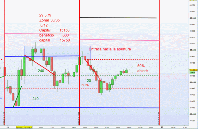 La entrada hacia la apertura por la tarde se opera en la altura o poco menos del max o en la altura o poco encima del min dia. Este set up solamente se opera si antes no hubo una extension de rango o cruze de la linea del stopp loss.