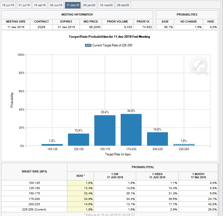 Manana ay una de las 4 reuniones mas importantes de la FED del ano (Marzo, Junio, Sitiembre y diciembre) y se ve que todos estan a decir que la FED va a bajar los tipos si o si (si no es manana es en sitiembre o diciembre) y las pools estan assi: