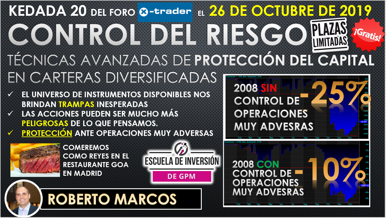 Para apuntaros muy sencillo: debéis enviarme un correo electrónico lo antes posible a x-trader[a]x-trader.net indicándome si venís solos o acompañados, el título de vuestra ponencia en caso de que vayáis a realizarla y, si os apetece, contándome un poco acerca de vosotros (un resumen de vuestra historia en el trading y por qué queréis venir a la kedada). Como respuesta, os mandaré los detalles del sitio donde se celebrará el evento y cómo llegar al lugar.