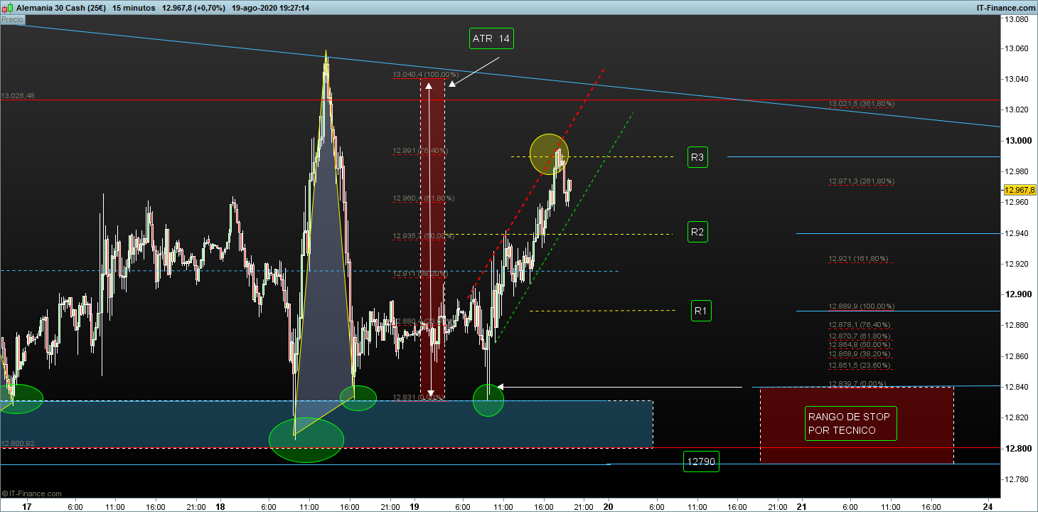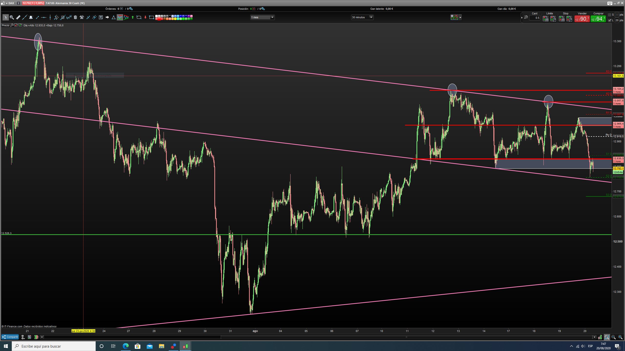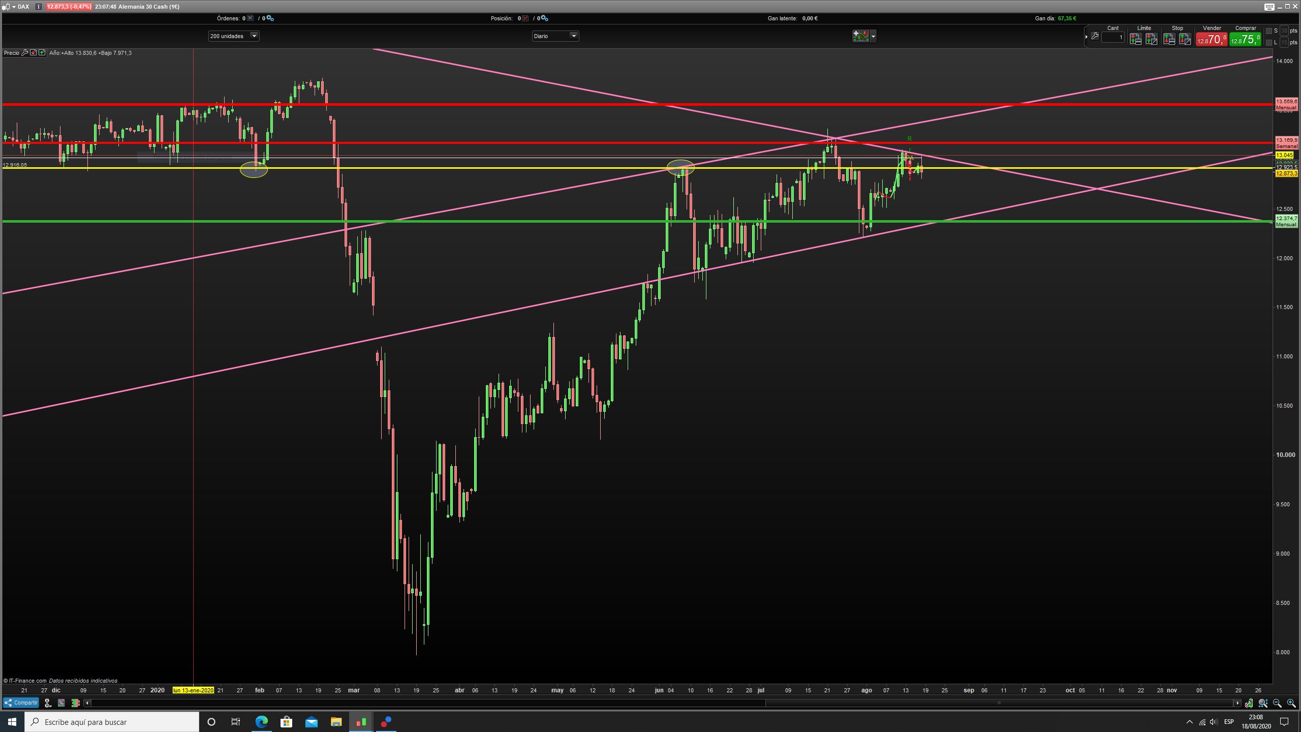 Marque la zona hacia abajo en lugar de hacia arriba, esperando fuese a testear los mínimos de ayer, así que hoy nada, pero me quedo con la idea