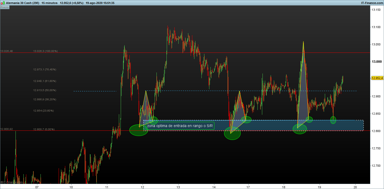 Al trabajar cada configuracion optima por separado en discreccional estas tres configuraciones modelo,te obliga a trabajar el rango de zona de entrada ajustando el riesgo a un rango de stop asumible y con buen potencial R/R en base al nivel de entrada, pero dandole probabilidades tecnicas de que el grueso de operaciones se capturen y no te dejen fuera por pocos puntos y aun asi muchas se van sin entrar en ese rango de entrada, tocar la linea evidentemente se van muchas mas.