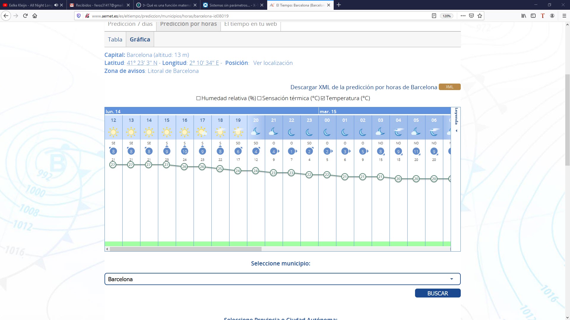 De esa gráfica obtienes la información de la temperatura de cada hora. Si se mira la temperatura a las