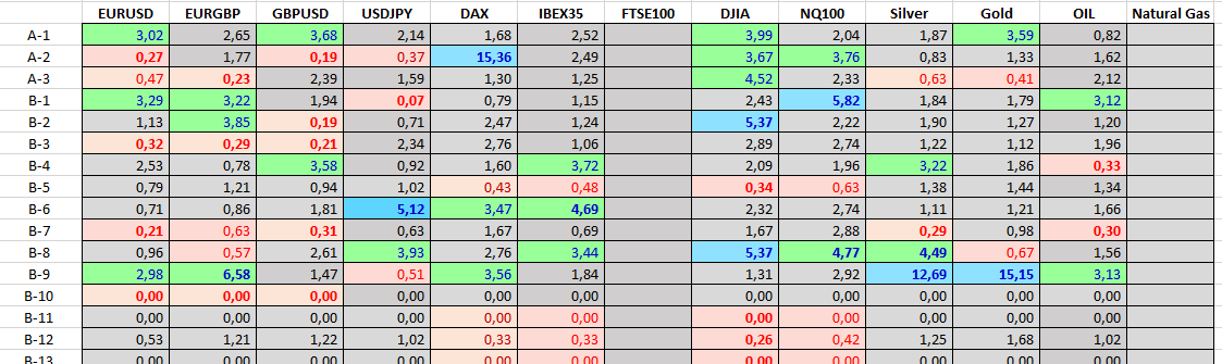 Ahora ya sabemos la desviación estándar por horarios en barras de 60M y la diferencia entre máximos y mínimos. Lo siguiente que necesitamos saber será la frecuencia en que nos habrían entrado órdenes limitadas y con la que podríamos salir del mercado con beneficios.