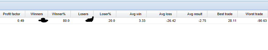 ¡Ufff cuidado con eso dahon! No debes consentir nunca que tu pérdida media sea casi 10 veces tu ganancia media, ahora toca corregir eso poco a poco y lo malo es que no te deja mucho margen para errores. ¡Mucha suerte!