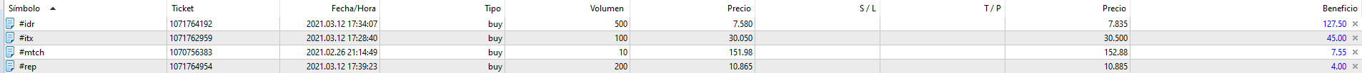 Abrí posiciones el viernes a última hora por que el sistema me da que esos valores son los más alcistas en el IBEX35 durante la semana que viene. El más alcista es PharmaMar, pero Admirall no permite comprarlos y he tenido que comprarlo en eToro. Luego sucederá lo que tenga que suceder. Pero tener confianza en el sistema también es importante.