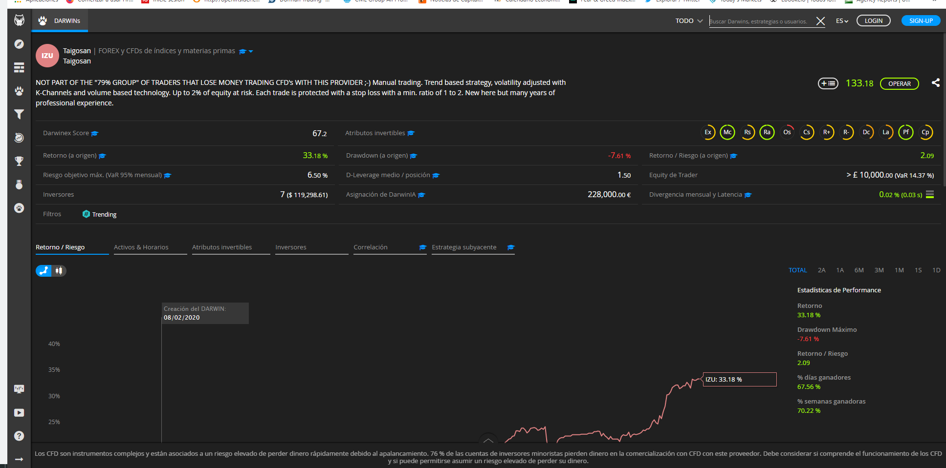 Luego hay operativas como la de Dahon que van a tumba abierta, doblan cuenta, retiran capital inicial y juegan con el capital del broker.. es una forma respetable de ver el mercado...siempre viven al limite de lo que da la cuenta... es una estrategia... no es la mia pero es una estrategia. Mientras se demuestre lo contrario, es ganadora, y mucho... aunque como suele ser en operativas muy exigentes sus ratios son discretos.