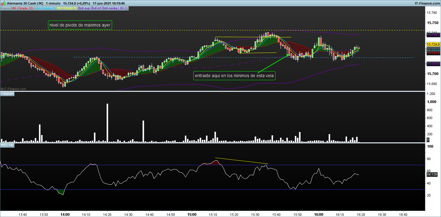 Para aprovechar un scalping en al nivel del pivote que marco ayer apx al mismo nivel del maximo de hoy, en mi opinion esa entrada es muy tardia