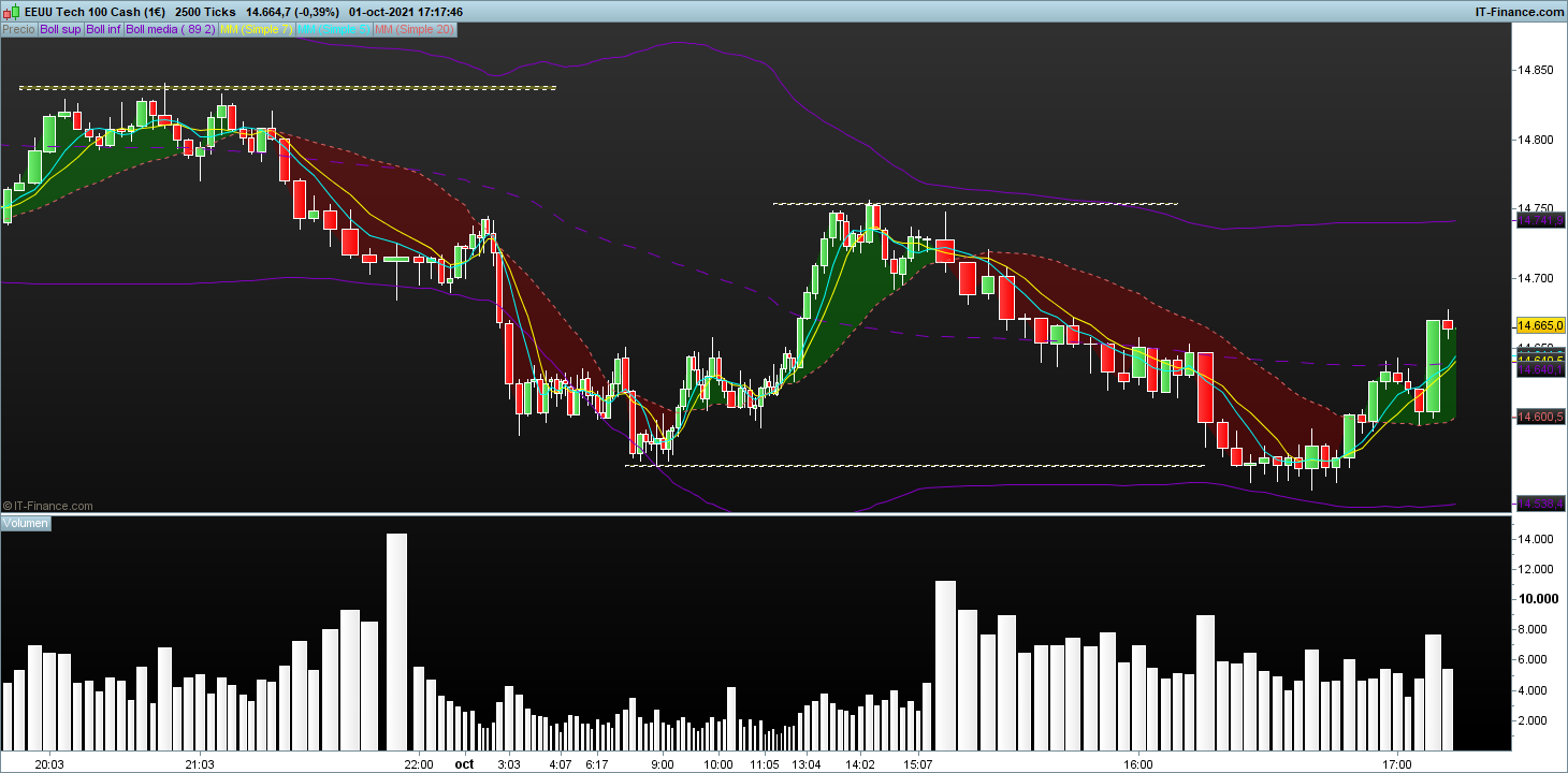 Elimino la variable tiempo de las velas utilizando velas de 2500 ticks para operar en nasdaq y en otros activos para analizar la actividad del mercado
