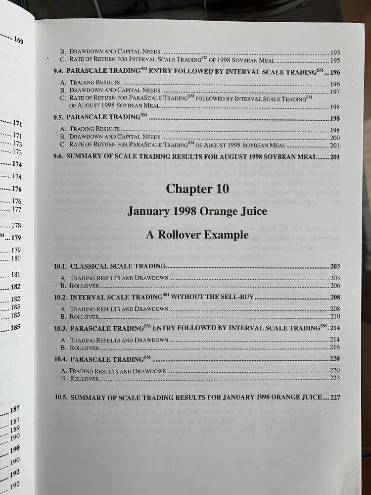 En el original había 384 paginas y al capitulo 10 ultimo le seguia un capitulo 11 donde se utilizaban Opciones covered CALLS para cubrir en hedge a cada tramo del scale...................................en el capitulo 12 se aplicaba una combinación de Straddels y Covered Calls con el ParaScale trading.......................