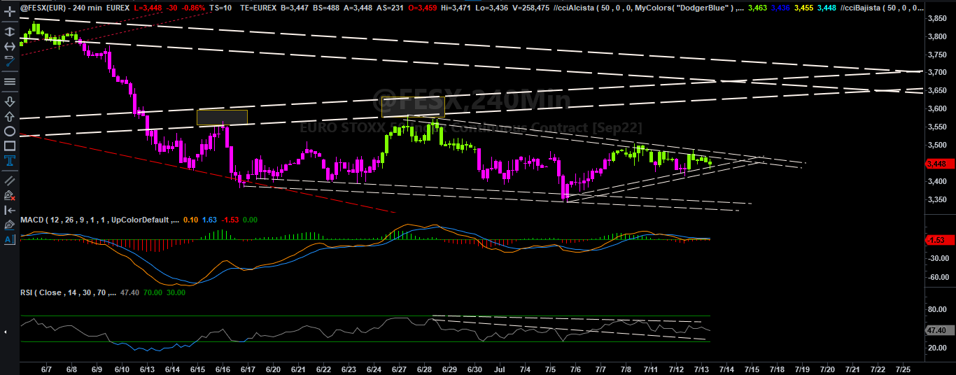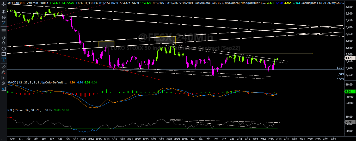 El eur50 supera el canal bajista pero debería superar el último máximo en 3504. Yo creo que este largo me lo perderé y me posicionaré para cortos más arriba.