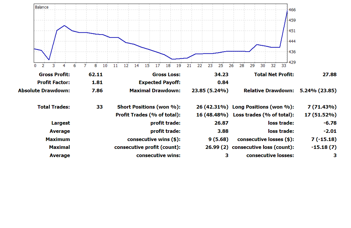 Esta semana ha ido muy bien. He tenido una tasa de aciertos del 44% pero el factor de beneficio es de 3.06. Es decir que he ganado 3 veces lo que he perdido. El DD ha sido del 1,41% lo cual me indica que he sido muy conservador en el tamaño de las posiciones.