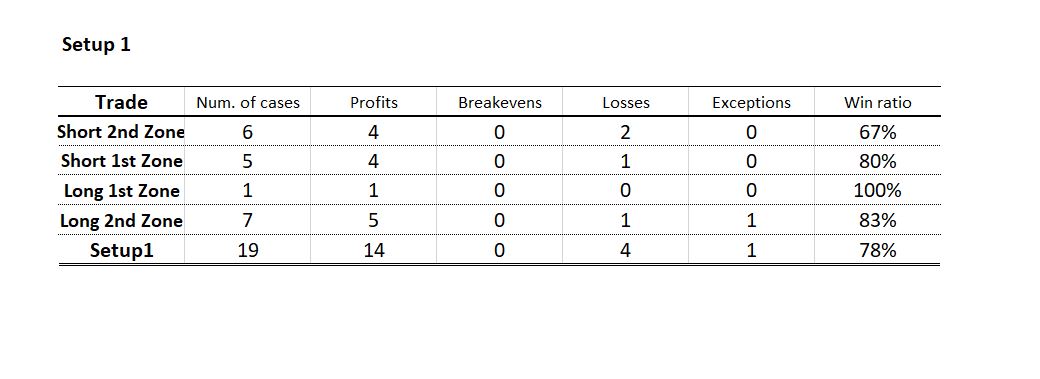 En post anteriores he comentado lo que significa cada una de las columnas, podéis consultarlo, a diferencia de otros días, he cambiado lo que yo llamaba L1, L2, etc, por 1ª zona de largos, 2ª zona de largos etc. a petición de Georg, también me ha pedido que indique lo que significa Exceptions y la verdad es que estoy por quitar esta columna de la tabla si genera dudas, Exceptions son días en los que el precio atraviesa una zona, pero no se produce reversión y como consecuencia, sin reversión no entramos al mercado.