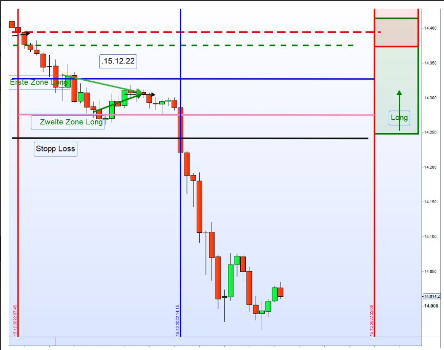 Además los futuros americanos ya estaban en rojo desde la apertura de las bolsas Europeas, aún así, se podrían haber abierto posiciones largas en la primera y segunda zona tal y como nos muestra Georg en su gráfica: Pero sólo con una buena gestión del riesgo y tras conocer bien las reglas se podría haber evitado la tragedia ya que éstas establecen una parada de la posición tras una consolidación lateral en las proximidades del máximo o mínimo diario.