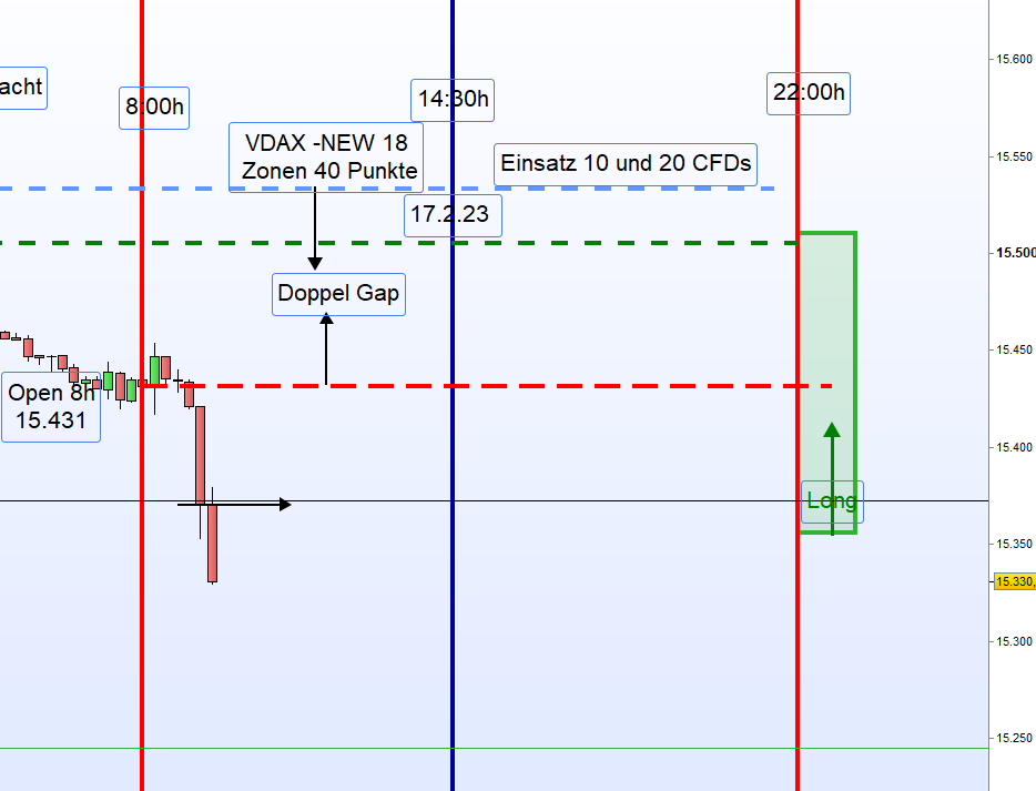 buenas Elarvi, parece ser que George Ha cambiado la regla del doble gap...al final después de tantos años da un poco igual pues ya conoces bastante bien el Dax, pero bueno, creo que ahora nos fijamos en la vela de las 9, como está por encima del precio de apertura y es un gap bajista...dibujamos las zonas largas normales y la primera corta es al doble de una zona.elarvi escribió: 12 Feb 2023 11:57