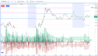 buenos días Elarvi, me parece interesante la idea de ver los ATR filtrandolo por el minuto del día con respecto a ese minuto los 10 días anteriores, es como el andamio de George pero en velas de un minuto. Pero si se sale de las bandas, cómo lo operas, en reversión o como continuación del movimiento, como momentum del precio. Eso es lo difícil , averiguar la dirección. Normalmente si hay momentum y velas grandes, George no suele operar en reversion, espera a que el precio muestre debilidad, por qjemplo cuando una vela grande atraviesa de una vez la primera zona, esa zona no es operable y es mejor esperar a la segunda zona. También he visto en el pasado como una operación de microtrading iba en contra y defenderla tirando unos 20 puntos( había muy poco vola) más abajo una segunda zona y operarlo no ya como microtrading sino como zonas normales.elarvi escribió: 10 Ene 2024 10:07GeorgM escribió: 08 Ene 2024 11:32 La semana pasa bien