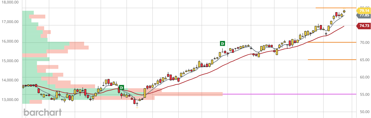 En principio parece estar bajo control, pongo un aviso para el precio en 79 y otro en 71 y a esperar. Si no suenan mejor y el fin de semana próximo la miraré y pondré la evolución. Si suena alguno y hago alguna modificación la pondré ese día.